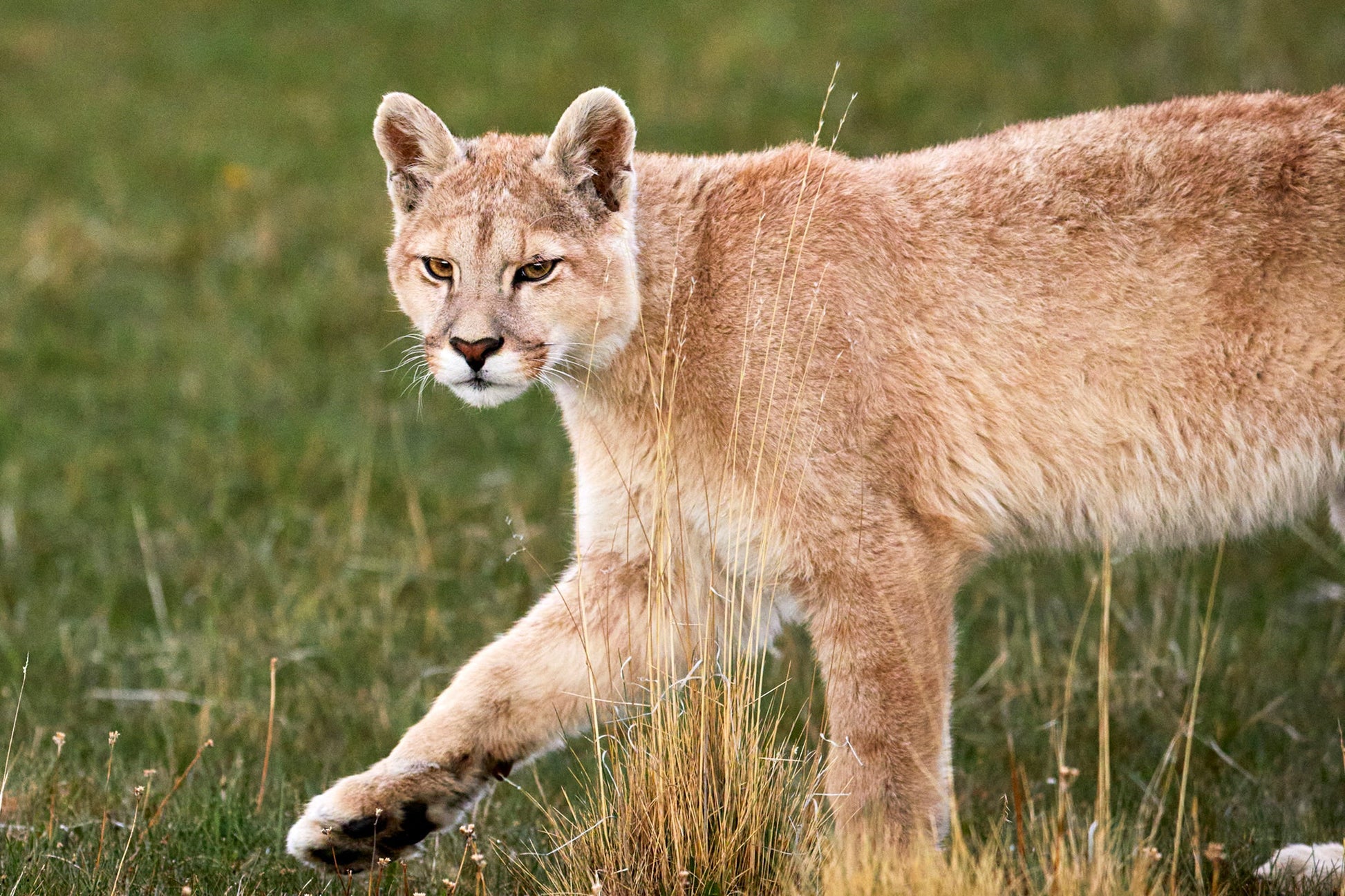 A puma cub puts his best foot forward in Torres del National Park, Chile.