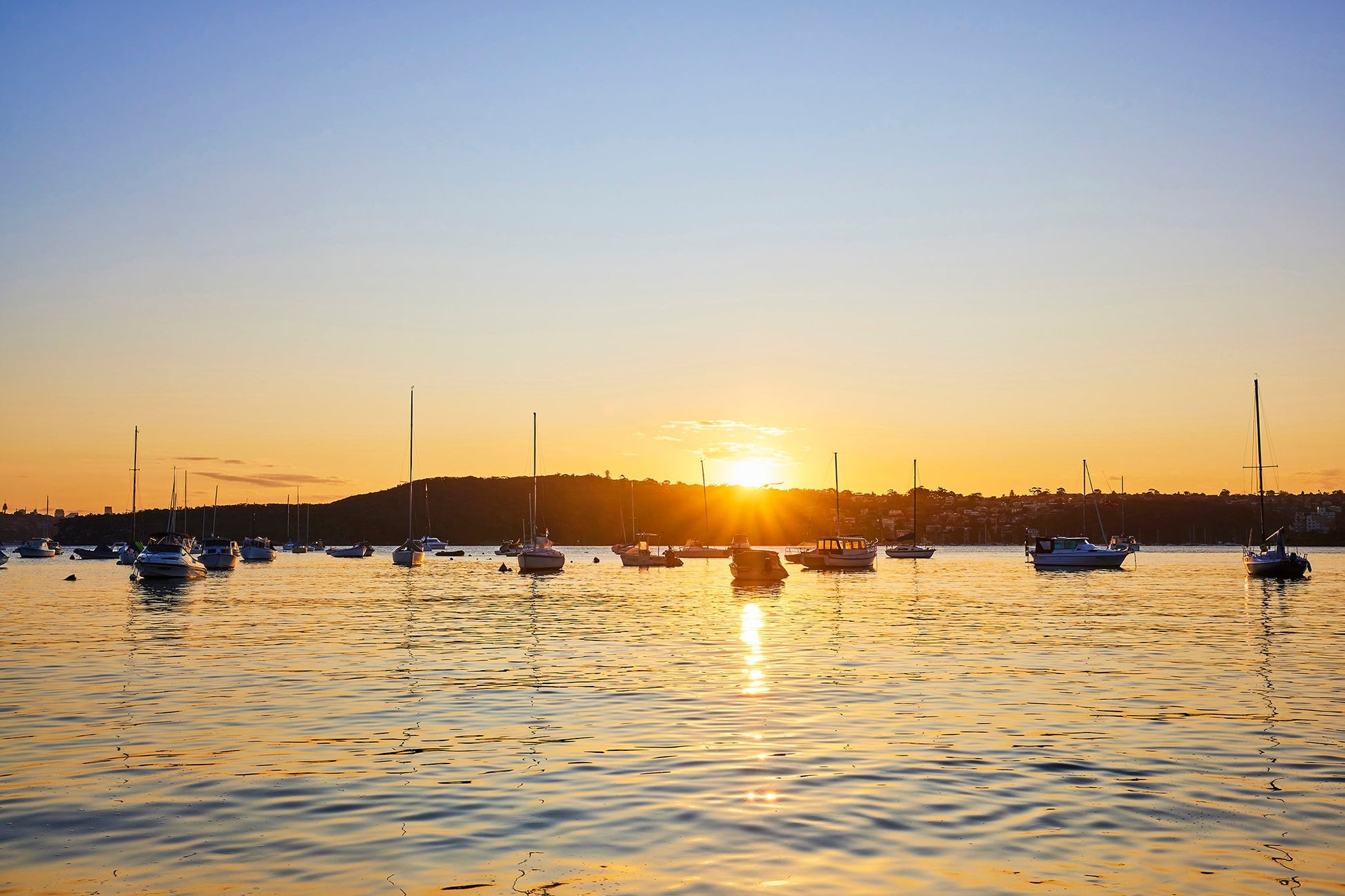 It’s no wonder everyone gathers on the beach at Cabbage Tree Bay to watch the sun go down across the boat harbour. On this particular evening, a spectacular sunset paints everything in pure gold as the last light of the day dances across the ripples of the water.