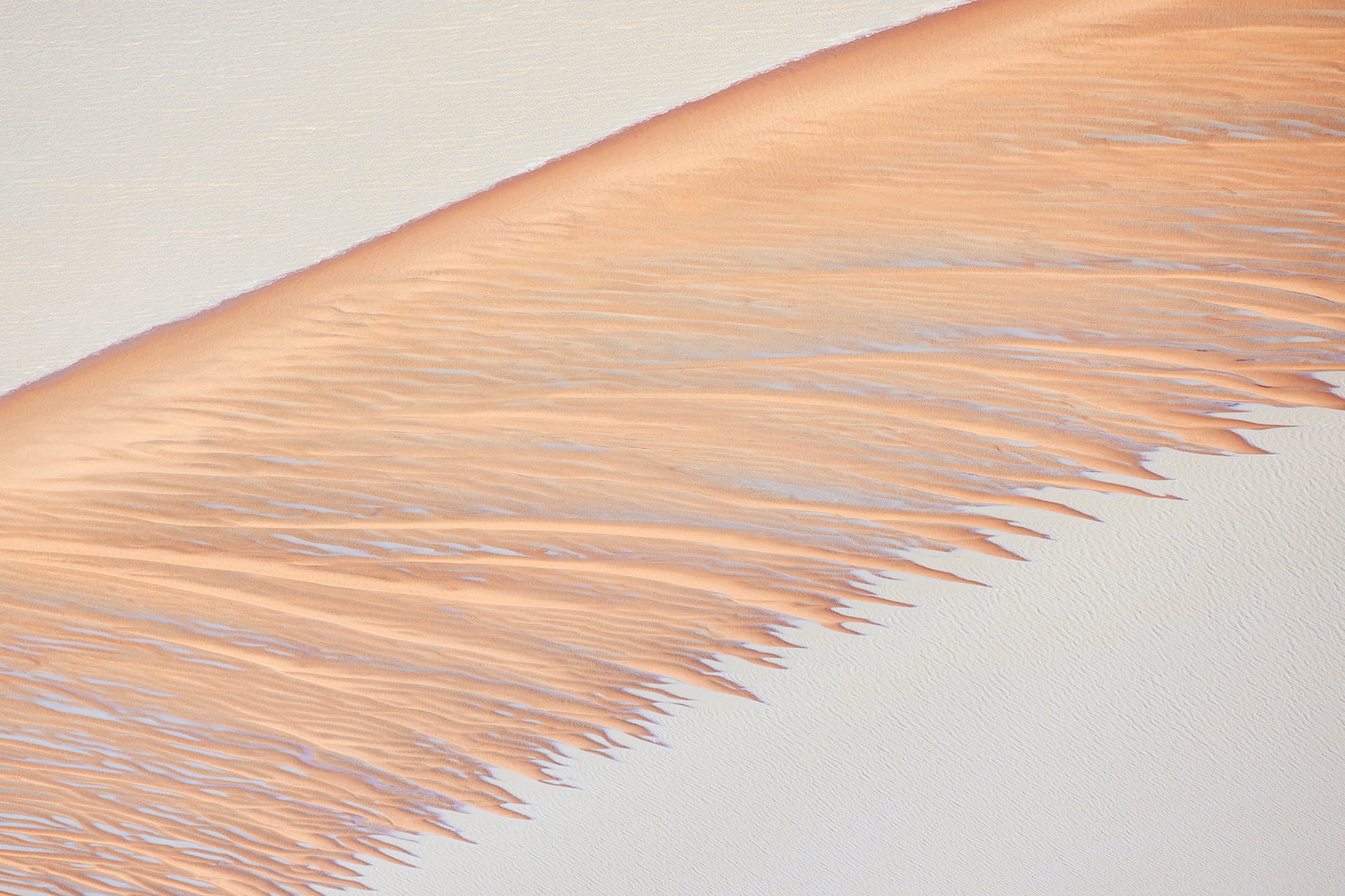 This incredible scene was captured from a helicopter whilst flying over the tidal sandbars off the coast of  Western Australia. From afar, the ribbed contours and textures look like a giant feather floating over a shallow  sea, tainted beige from all the mud and sand in the water.