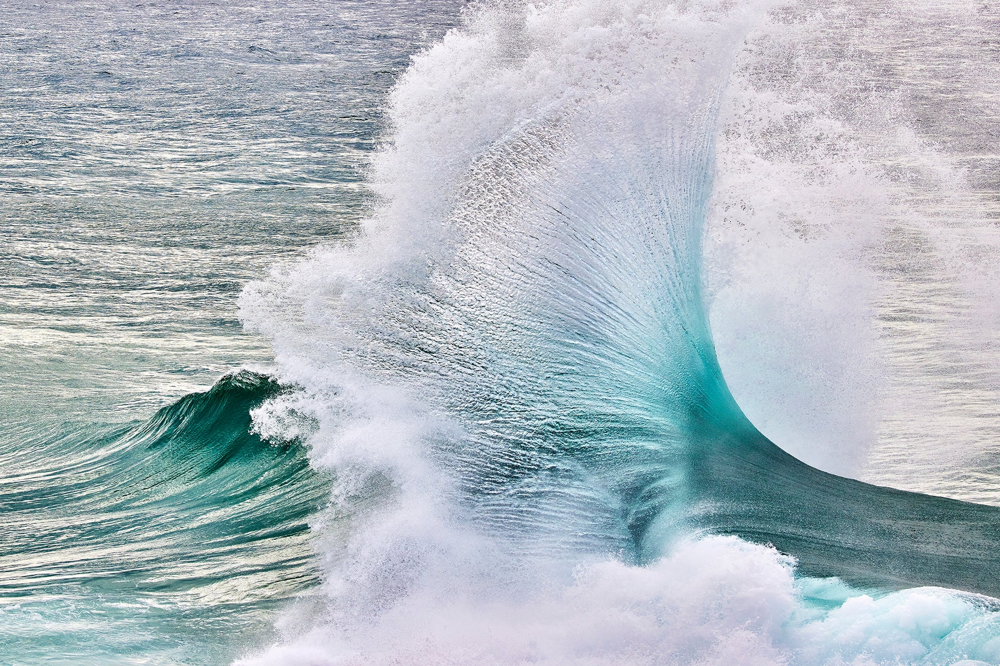 I would rate fan-shaped waves like these one of the hardest to capture, especially given the rarity of where and when they form. The conditions have to be just right for the wave to compress and shoot up into the air in this stunning fan shape. Some might even liken it to a fish tail or perhaps even a mermaid tail. What do you see?