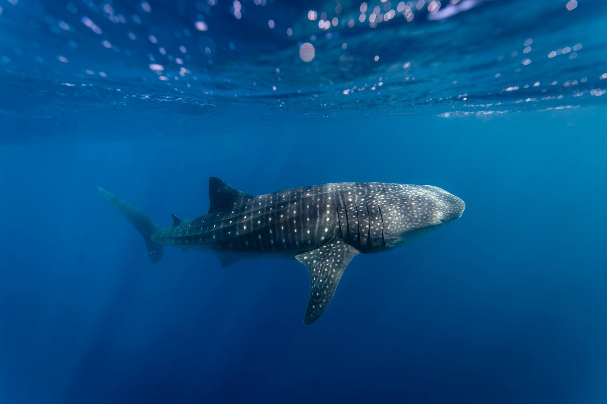 Swimming with the world's largest living fish, the Whale Shark, is one of the most breathtaking underwater encounters you can experience. They are a relatively slow swimming species, but you still need to power up to keep pace with them (especially when you are pushing a large underwater housing through the water in front of you).