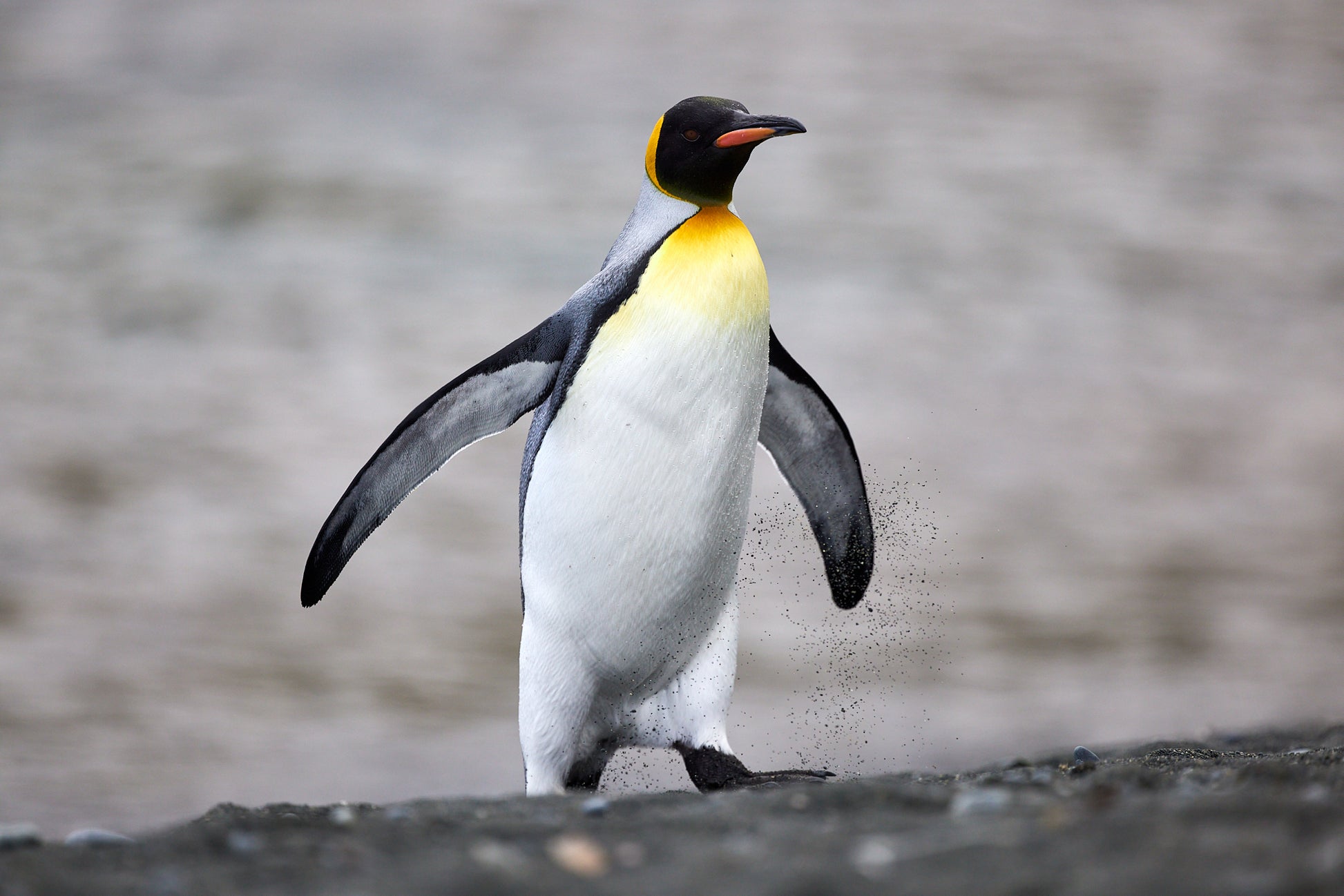 A King penguin emerges from the ocean at Macquarie Island's Sandy Bay.