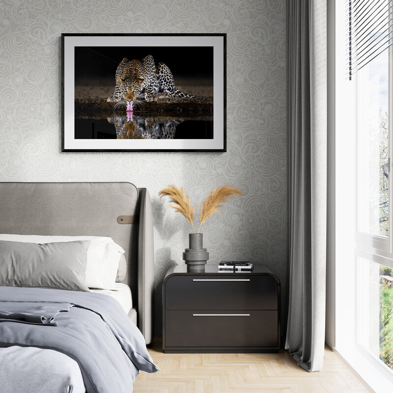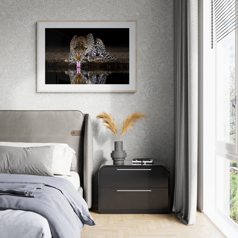 This photo was taken from an underground hide in Kenya, allowing me to capture an eye-level viewpoint that is seldom possible in the wild. Deep into the midnight hours, this magnificent leopard came the waterhole for a drink.