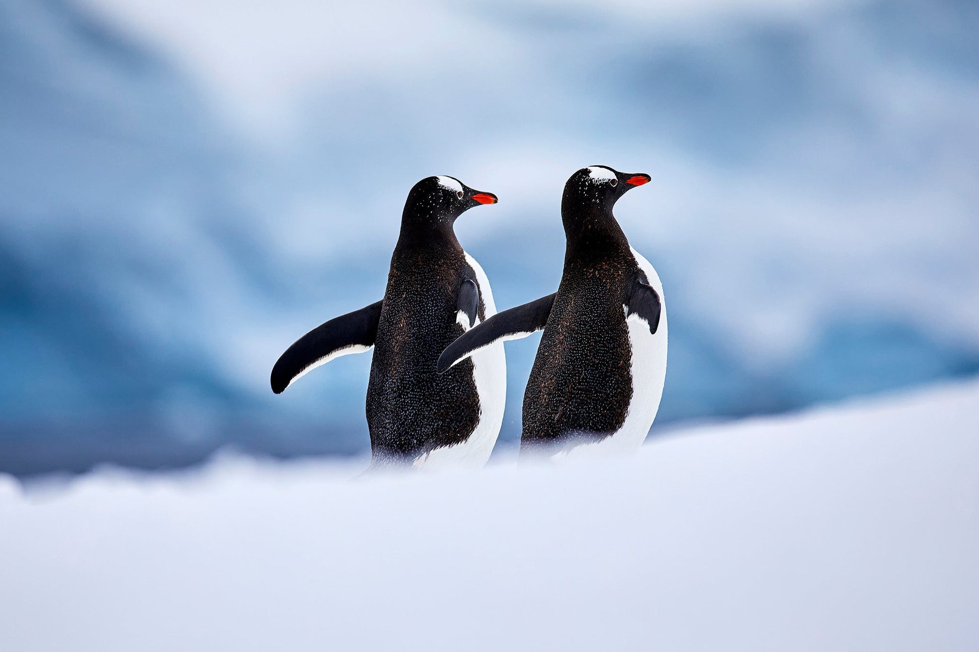 This pair of Gentoo Penguins are strutting their stuff on the snowy slopes of the Antarctica Peninsula. Watching penguins waddle is one of the funniest things you will ever see. It’s hard to believe these beautiful creatures are so graceful in the water, yet so akward on land.