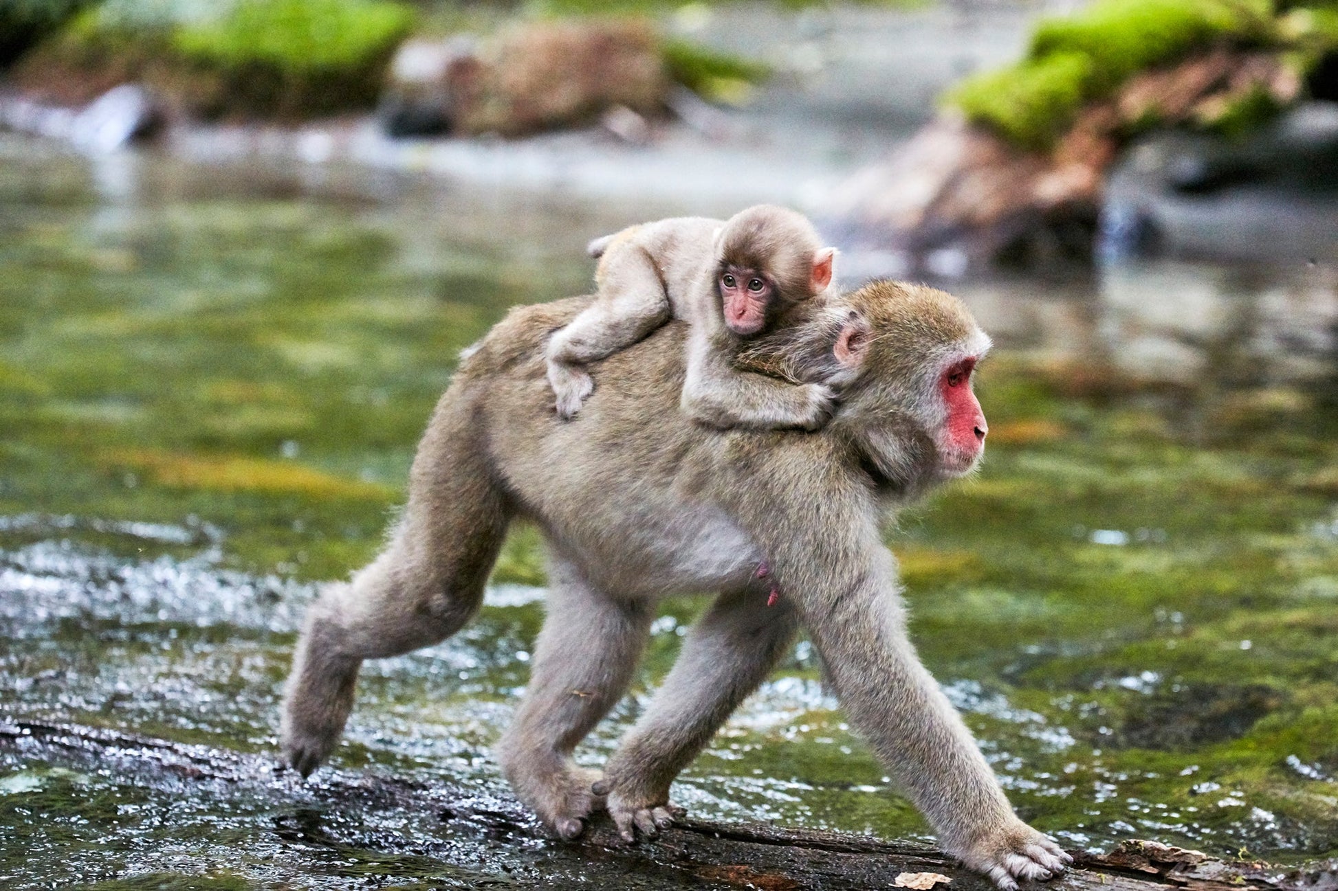 This baby Japanese Macaque seems to have the public transport system sorted and hitches a ride to cross a stream in Chubu Sangaku National Park. The park is located deep in the alpine region of Kamikochi and is often referred to as the 'Yosemite of Japan'. Having been to both, I can say that this is a more than accurate representation.