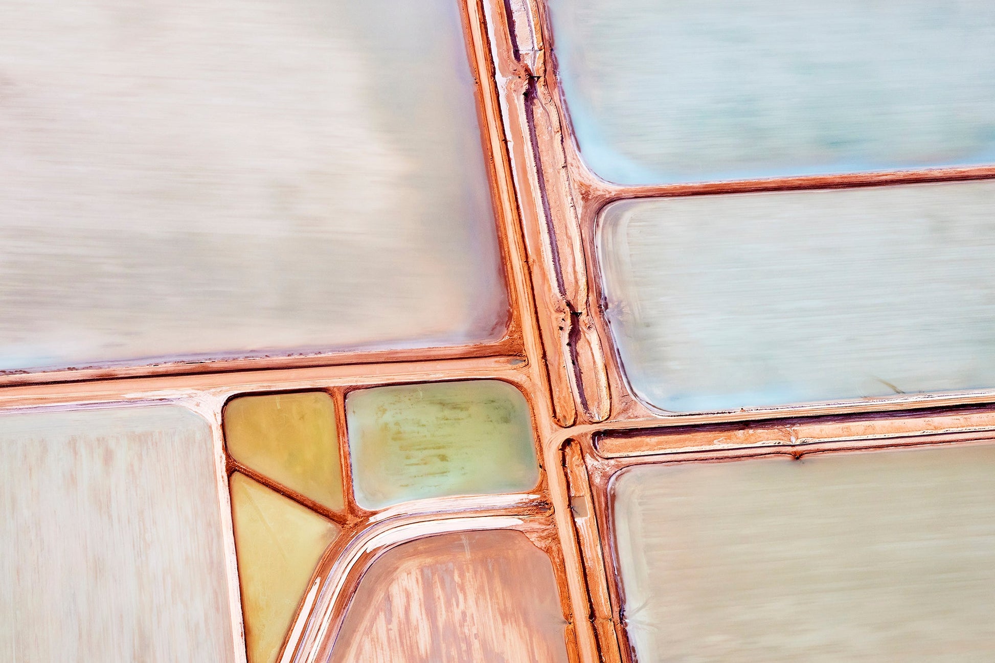 The different colours are formed by microorganisms, with the algae changing colour as the level of salinity increases in each pond.