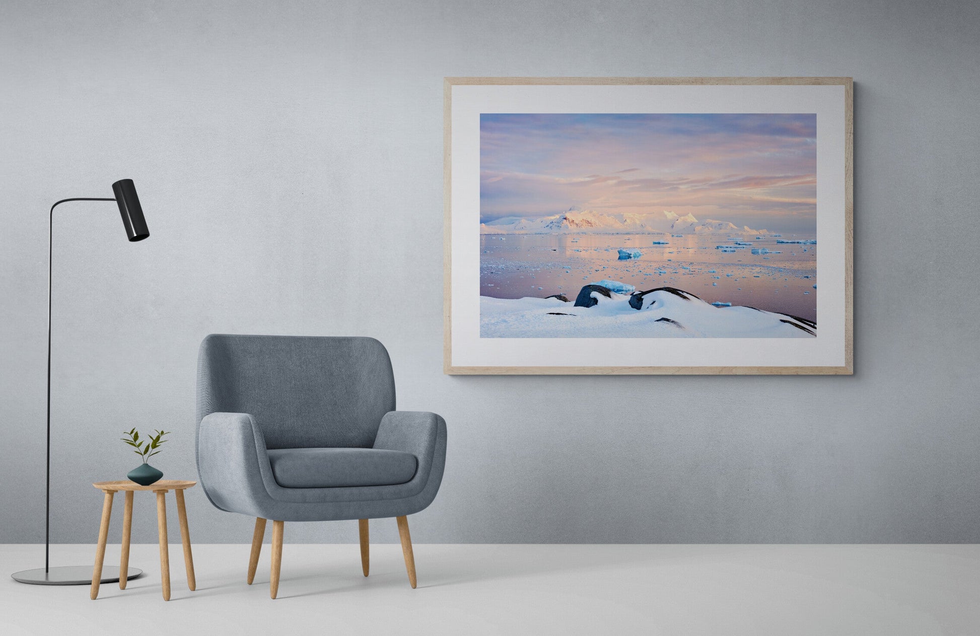 The listed print size is for the image itself (ie not including the signature area, white border and frame)*. Typically the ‘printed’ white border will be around 6cm to 11cm depending on the size of the print itself. For a more modern look, the print is now framed (as of January 2024) using this white border in place of using a traditional mat.