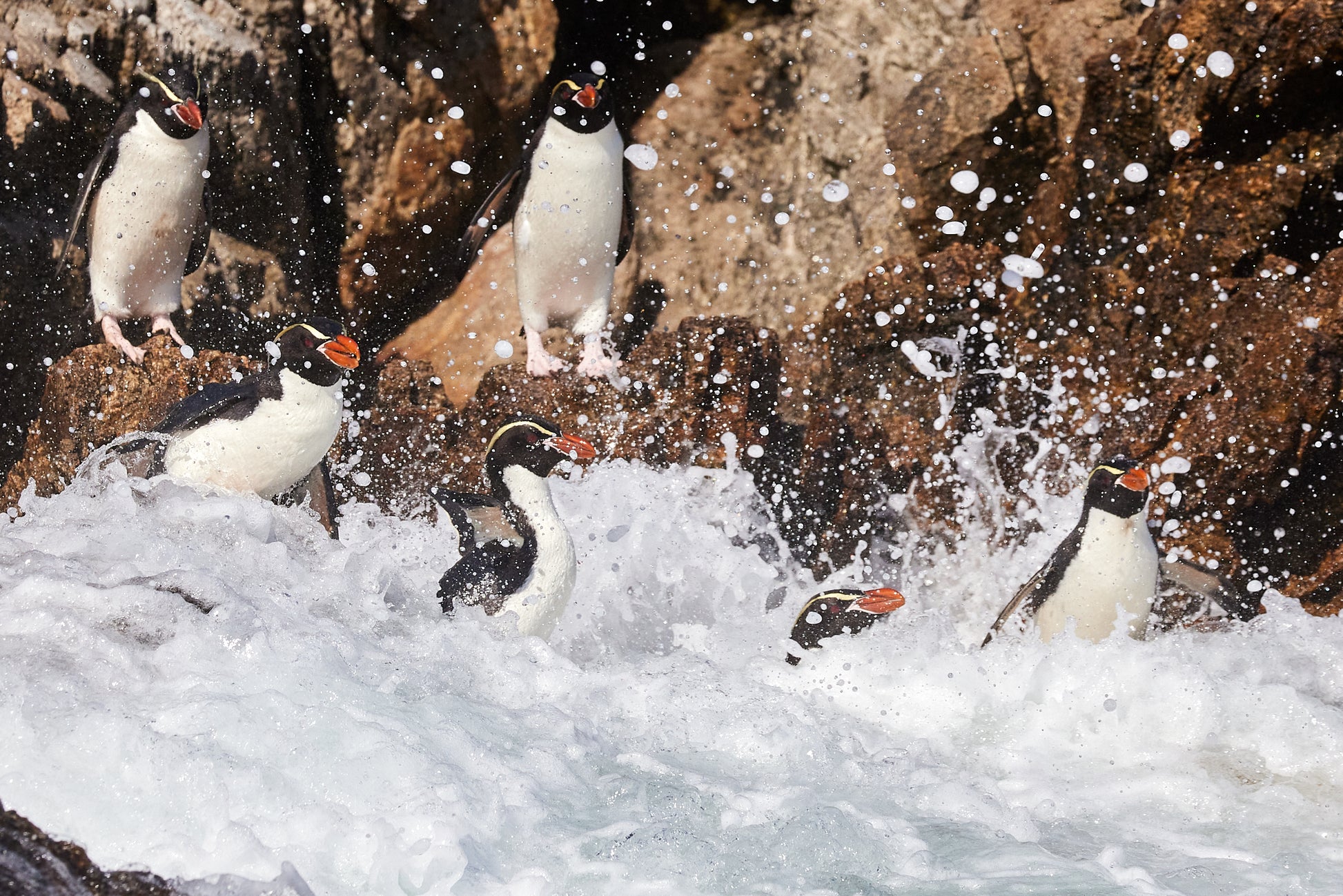 These adorable little penguins were a lot of fun to watch as they jumped in and out of the ocean off the coastline of North East Island in The Snares. It wasn't that easy for them either, as they had to negotiate a constantly moving kelp bed and crashing waves as well. The Snares is a strictly protected environment, so we are not allowed to land ashore. We were however able to nose in quite close with our zodiac, giving us front row seats for a rare wildlife encounter with the Snares Crested Penguins.