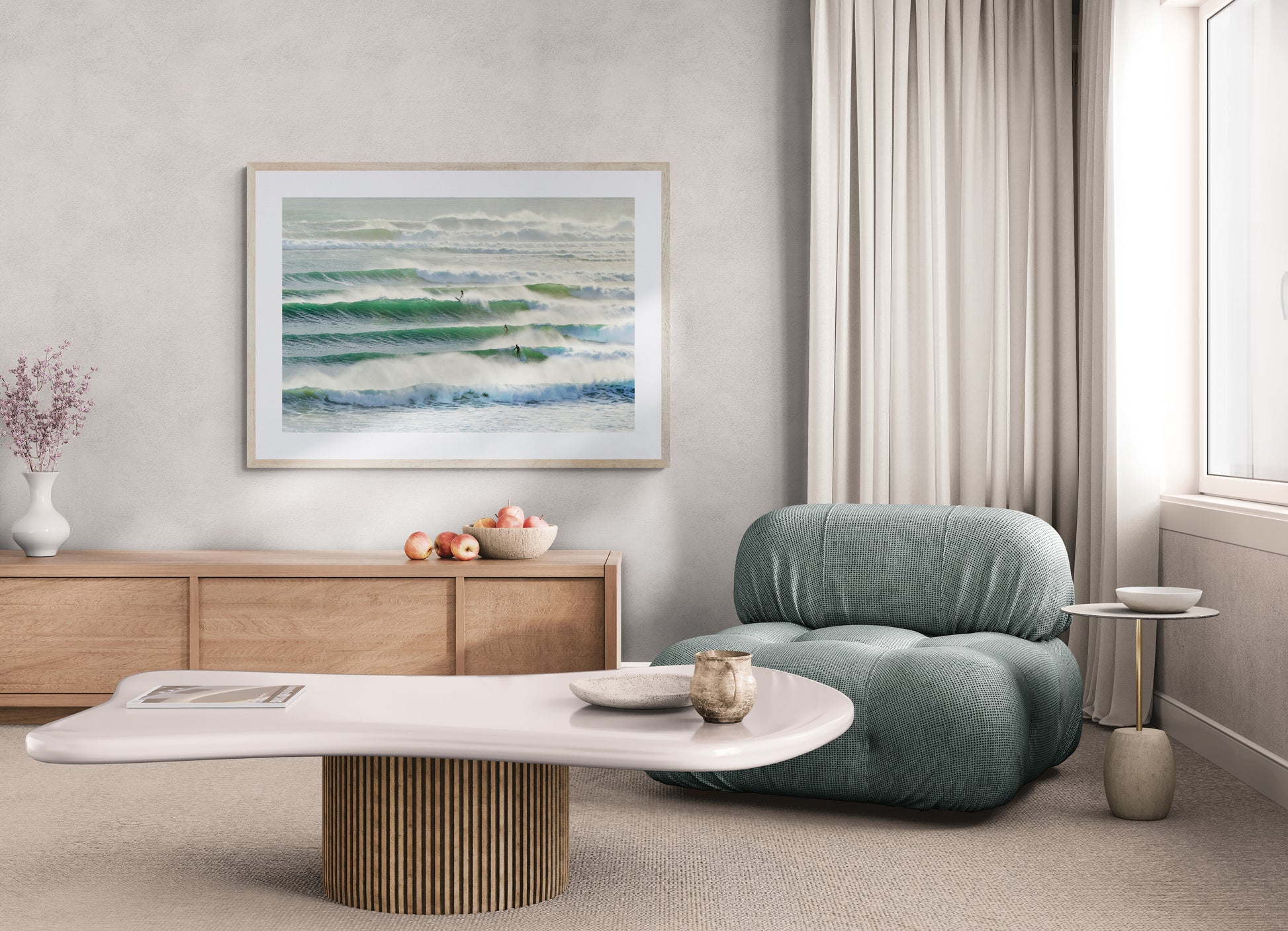 The listed print size is for the image itself (ie not including the signature area, white border and frame)*. Typically the ‘printed’ white border will be around 6cm to 11cm depending on the size of the print itself. For a more modern look, the print is now framed (as of January 2024) using this white border in place of using a traditional mat.
